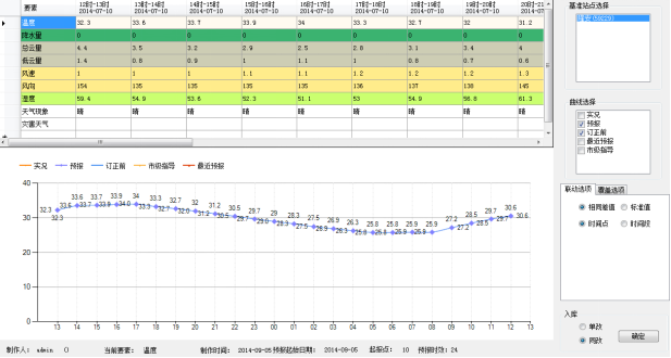 气象要素实现对精细化预报制作产品的查询展示,包括风向、风速、温度、降水量、云量、相对湿度等产品要素数据。